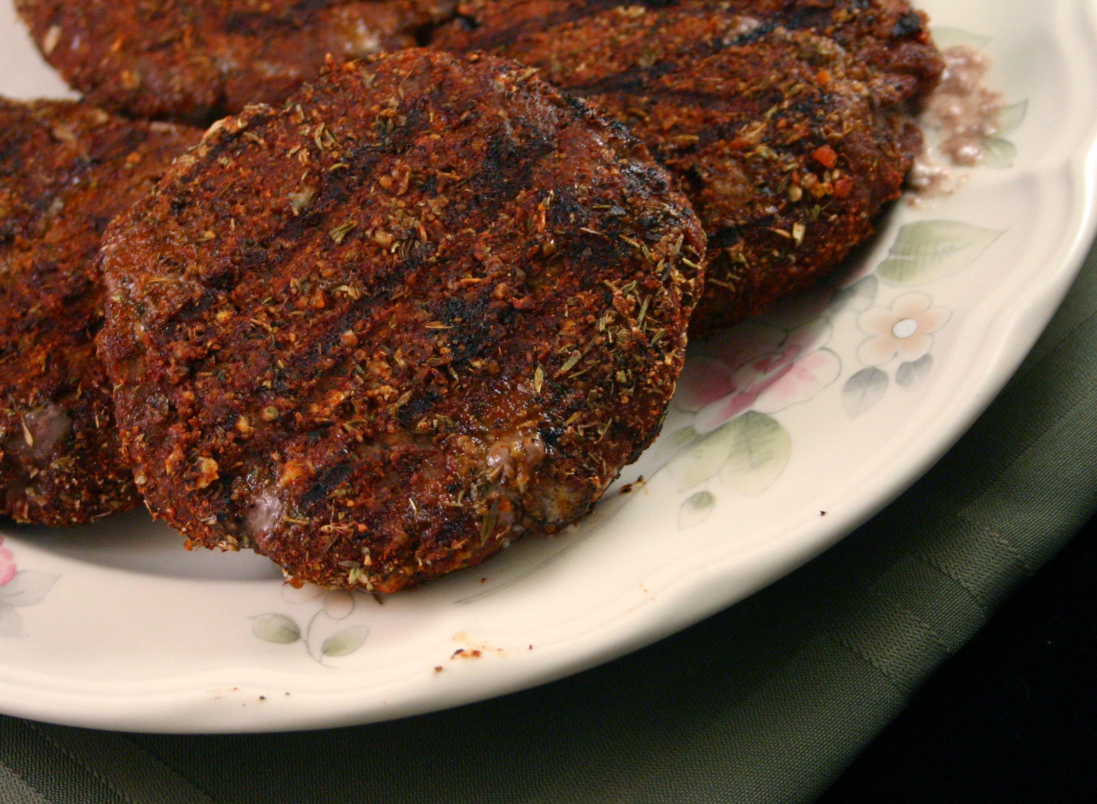 1 lb ground chuck 1 lb ground beef round 6 fresh kaiser rolls, split 3 -6 leaves romaine lettuce, torn 2 tomatoes, sliced 1 red onion, sliced 1?3 lb premium blue cheese (not crumbled) FOR THE BLACKENED SPICE MIX 2 teaspoons dried oregano 2 teaspoons dried thyme 1 1?2 tablespoons paprika 1 teaspoon cayenne pepper 1 teaspoon black pepper 1 tablespoon salt 1 1?2 tablespoons garlic powder 1 tablespoon onion powder FOR THE DRESSING (OPTIONAL) 3 ounces premium blue cheese (optional) 1?4 cup mayonnaise (optional) 1?4 cup sour cream (optional) 1 clove garlic, minced (optional) 1?4 teaspoon onion powder (optional)