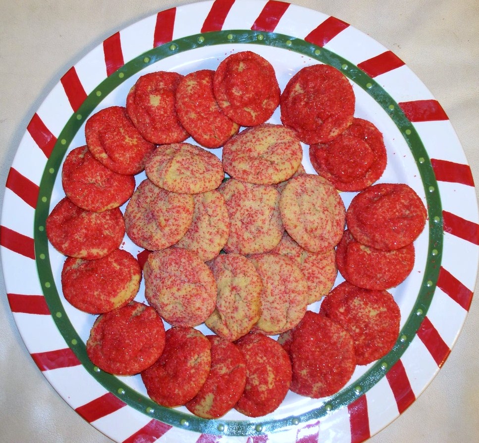 Cream together the sugars, Crisco, peanut butter. Add the eggs and vanilla. Sift the dry ingredients together and add gradually until blended well. Roll into tablespoon size balls. Roll cookie dough balls into sugar. Place on cookie sheets- do not mash with fork in normal "peanut butter cookie" fashion! Bake at 350 oven for 11-13 minutes.