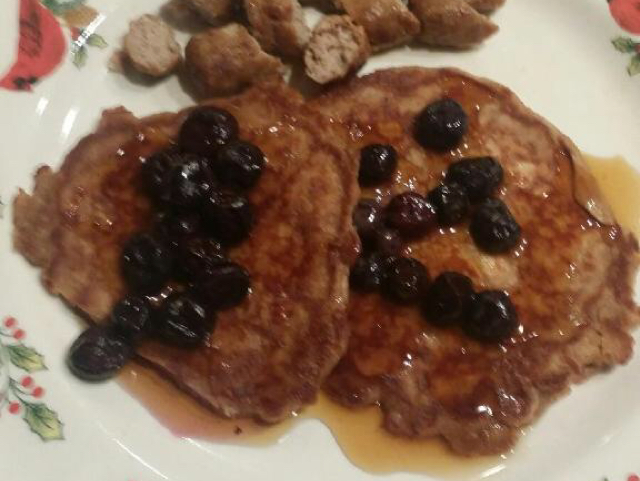 1 1?2 cups skim milk 1?4 cup canola oil 1 egg 2 egg whites 3?4 cup white flour 3?4 cup whole wheat flour 1?2 cup oatmeal 1 tablespoon baking powder 1?2 teaspoon allspice or 1/2 teaspoon cinnamon 1?4 teaspoon salt