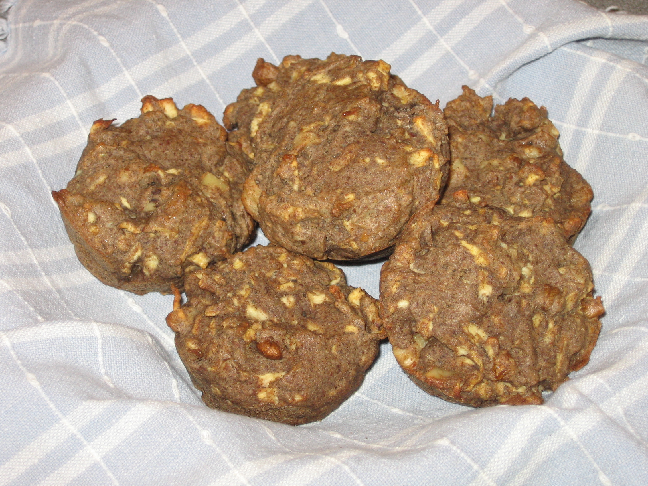 Mix the first 5 dry ingredients together in a bowl. In a separate bowl with a fork gently beat the egg. Add the milk, apples, and coconut oil. Stir to moisten the wet ingredients into the dry. Do not over mix. Stir in the nuts. Spoon batter into lightly greased muffin pan, divide into of the 12 sections. Don't worry about filling the other 4 sections just leave empty. Bake at 350F, for about 25 minutes or until done. Use a toothpick to test. When done, remove the muffins from the pan and put on a rack for 10 minutes then serve. While muffins are baking mix the coconut oil with the honey (you can use any honey you like). Coconut oil should be solid not melted, if your room is warm the coconut oil will not be solid. Put in the freezer or refrigerator for just a few minutes to create a solid oil if needed. Serve this tasty spread with warm muffins. Note: I use organic Extra Virgin Coconut oil that does not contain hexane for the most health benefits. WARNING! Honey is not for babies! Infants up to one year of age should not be fed raw honey.