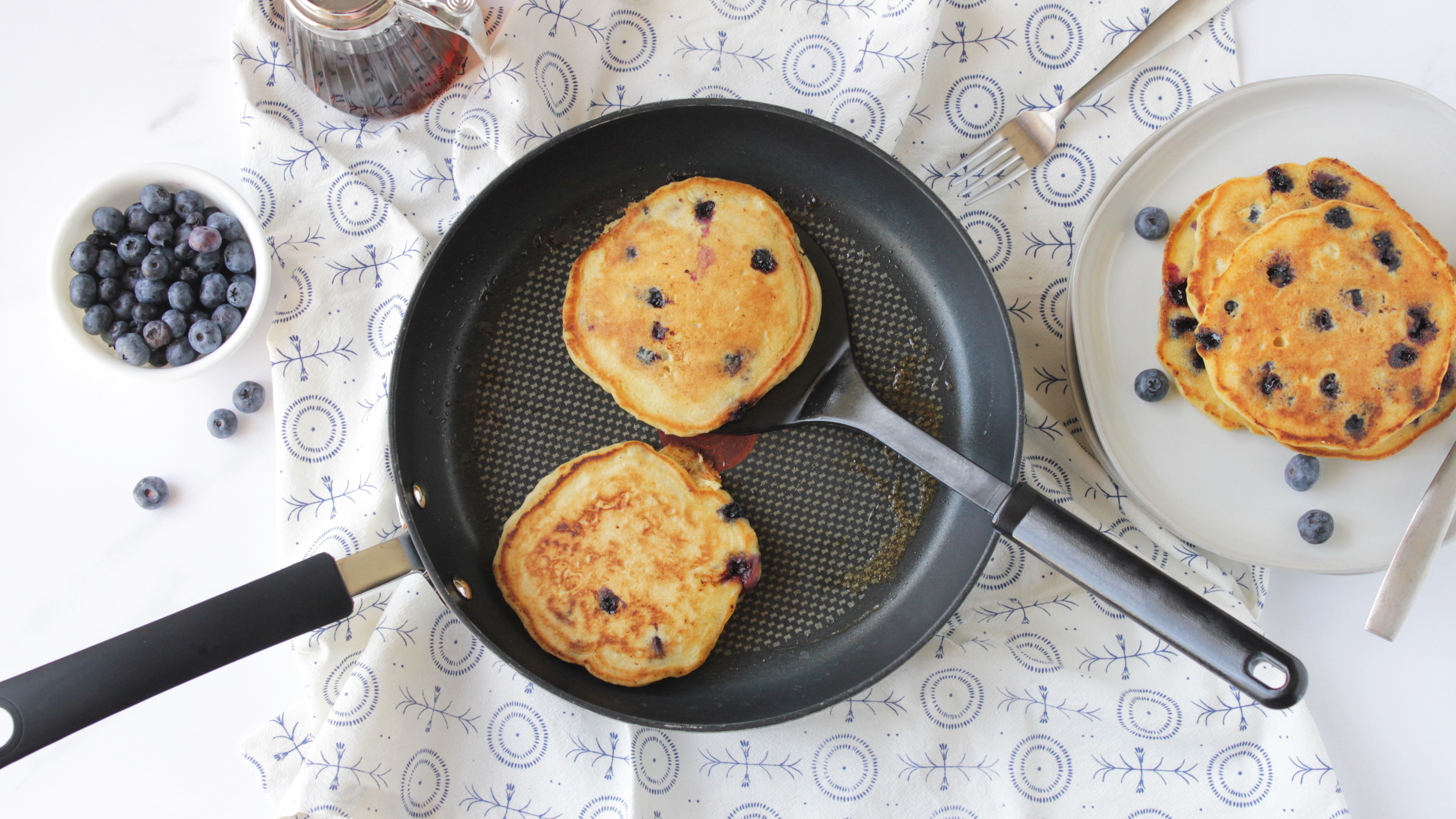TESTED & PERFECTED BLUEBERRY PANCAKES, MILK-FREE, EGG-FREE Recipe. Step-by-Step. is perfect for busy families. Comes together quickly with a few staple ingredients!