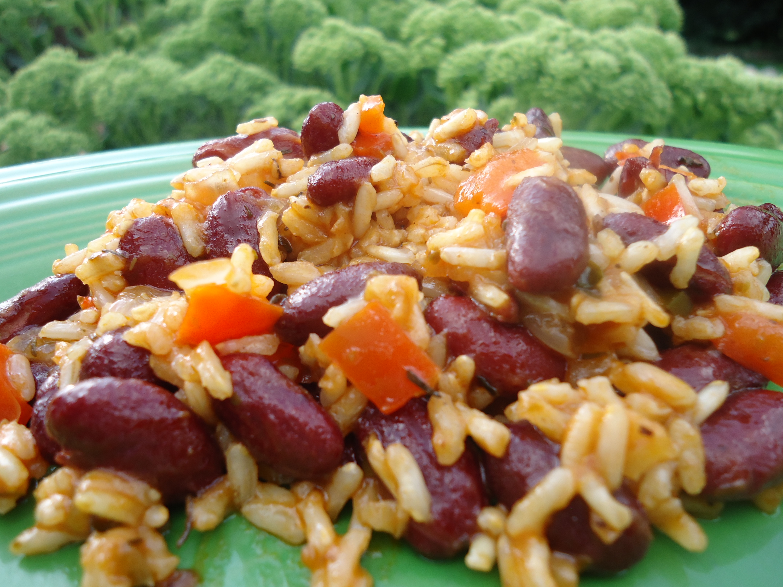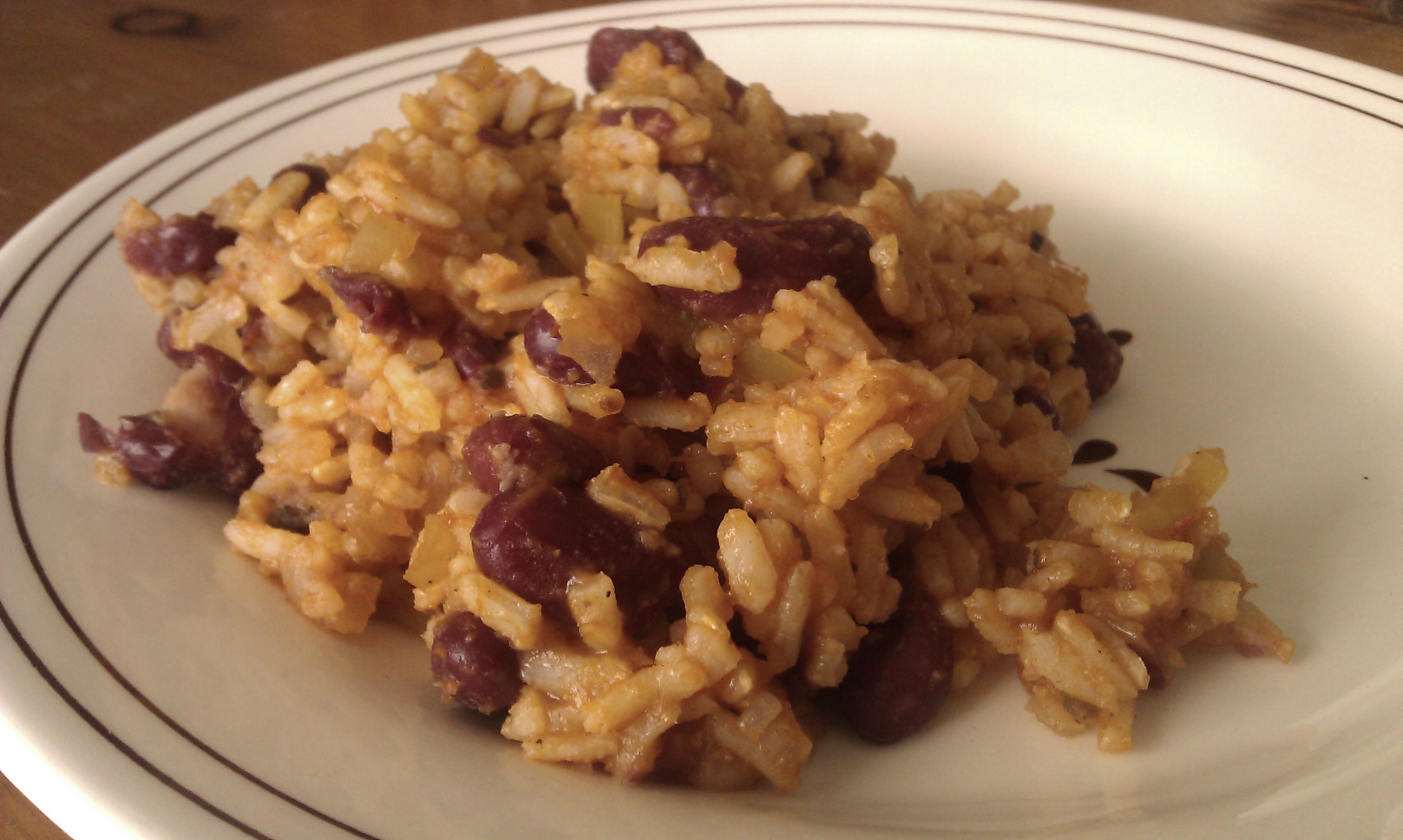 1?4 cup butter 1 onion, finely chopped 1 bell pepper, finely chopped 3 garlic cloves, minced 1?2 cup tomato sauce (or use 1/4 cup tomato paste plus 1/4 cup water, mixed) 2 cups red kidney beans, cooked (canned okay, drain first) 1 teaspoon thyme 2 teaspoons oregano 1 bay leaf 1 cup long-grain white rice 1 3?4 cups water (or stock) scotch bonnet pepper (or Tabasco chipotle sauce to taste)