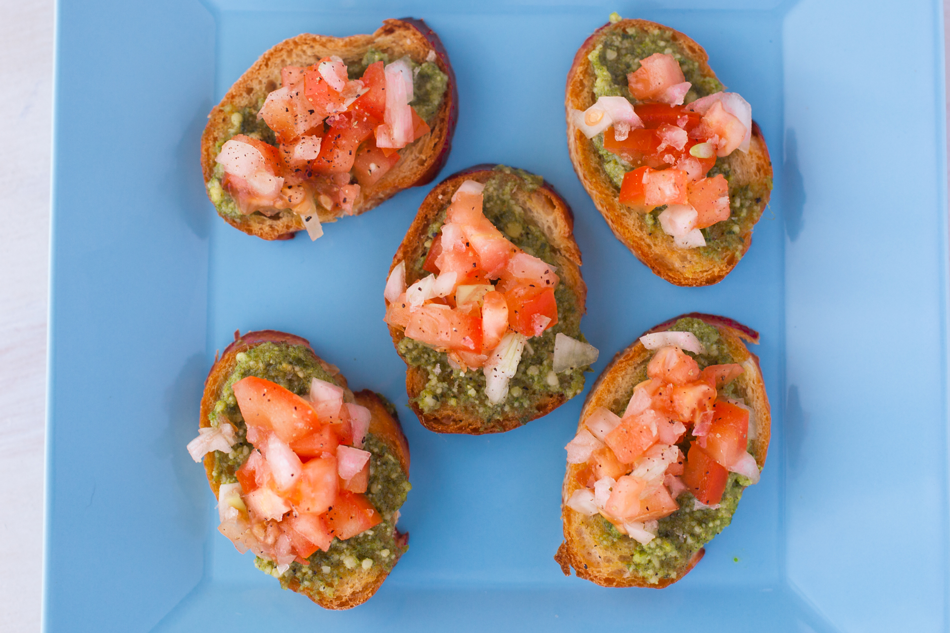How to Make BRUSCHETTA WITH PESTO, TOMATOES AND THINGIES. Recipe. Step-by-Step. is perfect for busy families. Comes together quickly with a few staple ingredients!