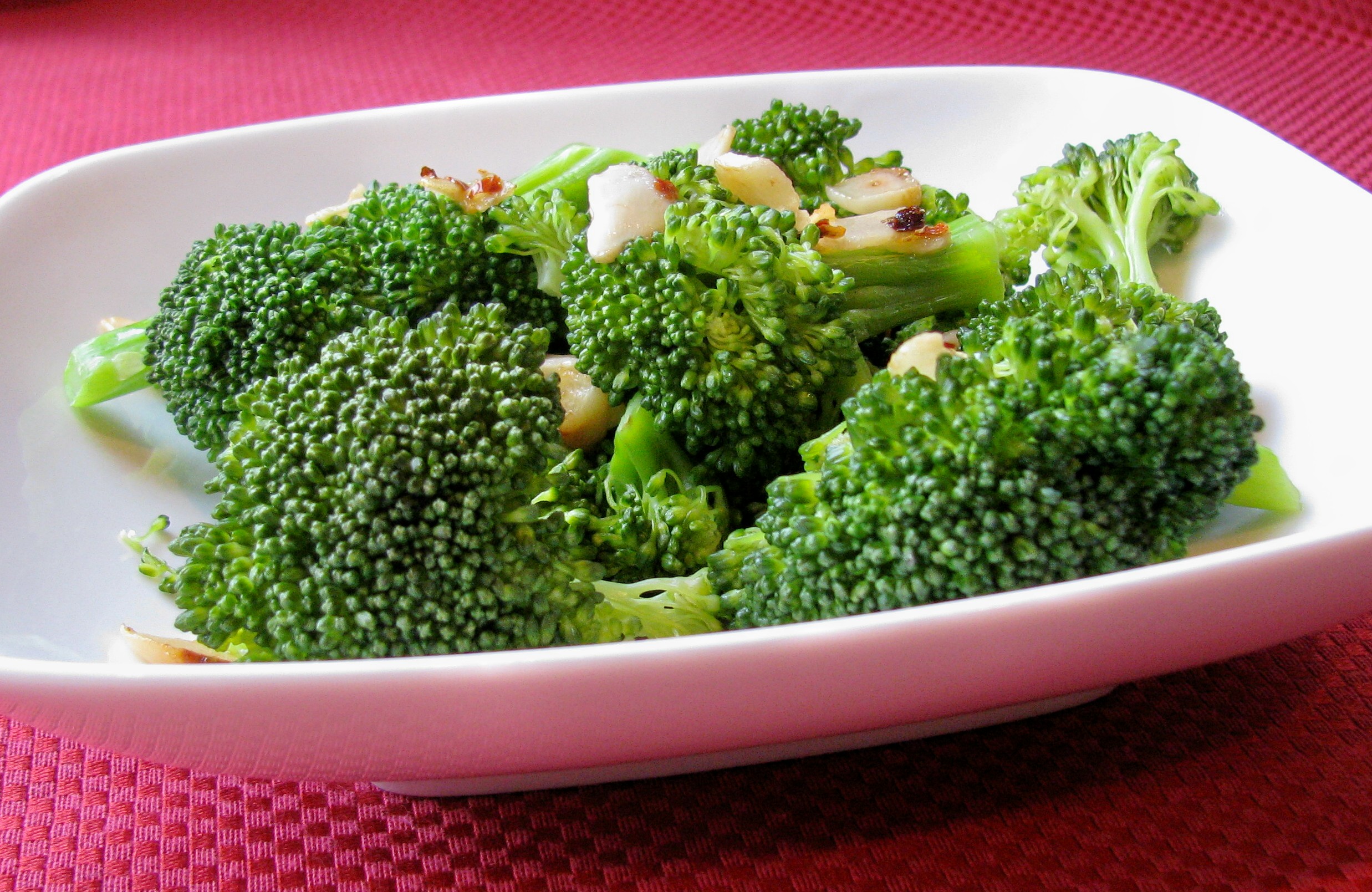 2 tablespoons extra virgin olive oil 2 -4 garlic cloves, sliced crosswise into thin slices 1?4 teaspoon red pepper flakes 1 1?2 lbs broccoli