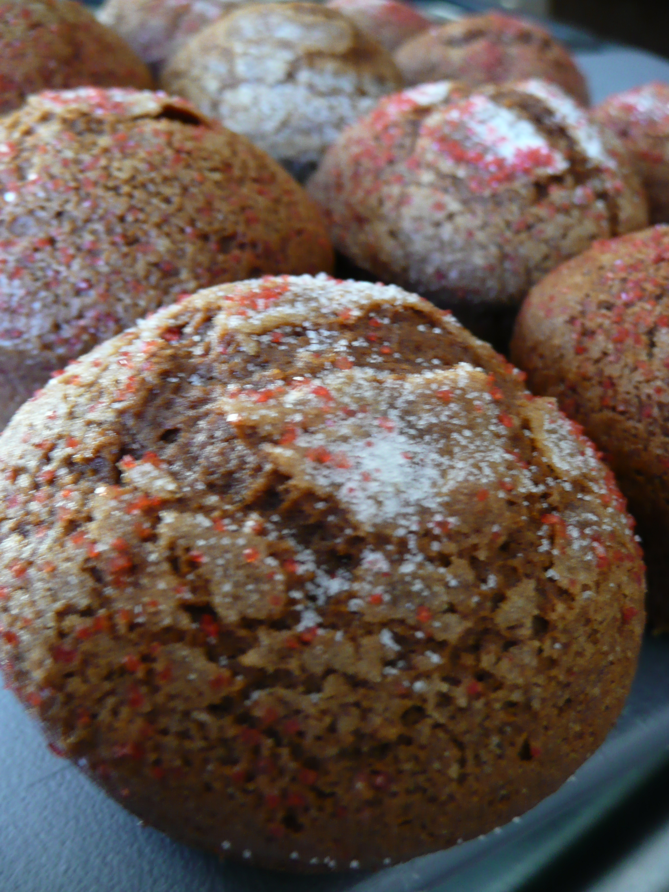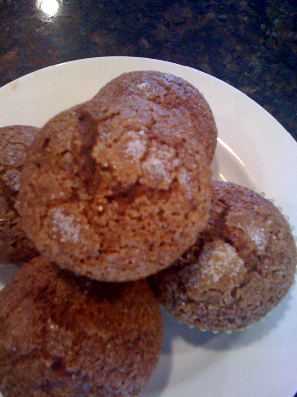 Preheat oven to 350. Grease 12 muffin cup/tins. In medium bowl, beat the egg, applesauce, oil, molasses and 1/2 cup sugar. Combine dry ingredients in a medium bowl and add to first mixture. Stir in the water, mixing well. Fill the muffin cups two-thirds full. Lightly sprinkle with sugar. Bake at 350 for 20 to 25 minutes or until done.