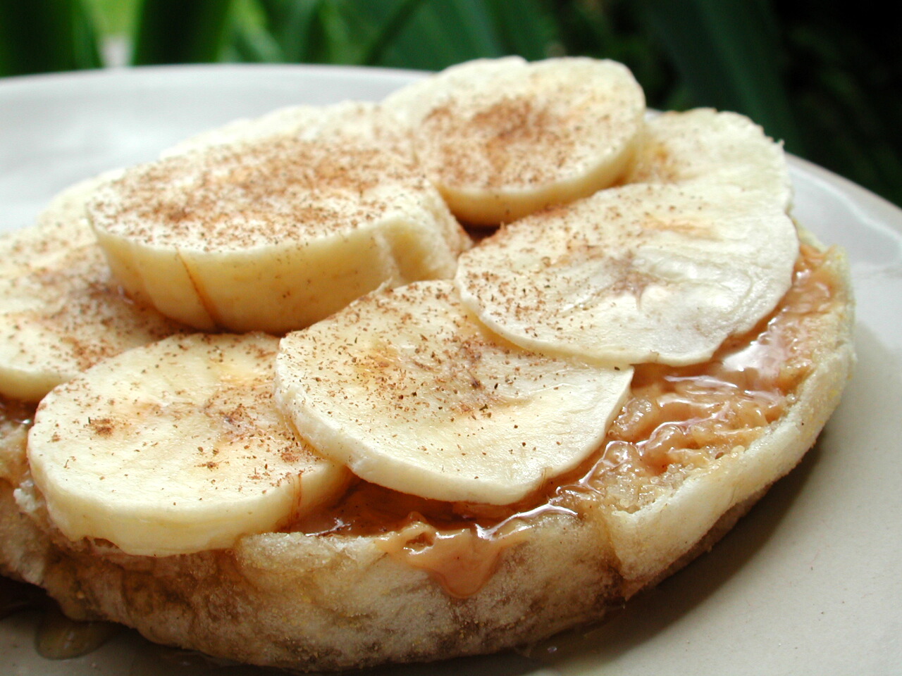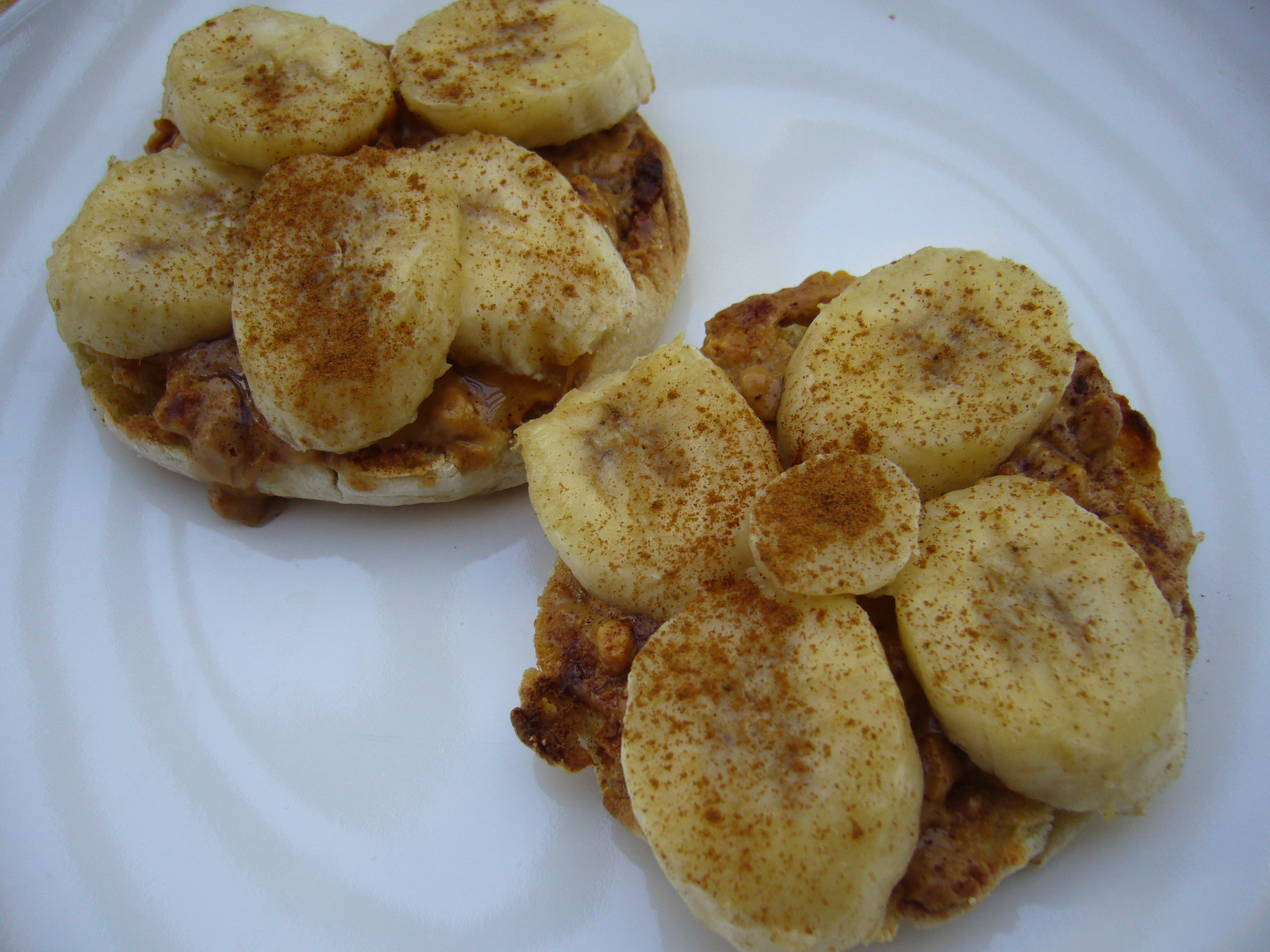4 English muffins or 8 crumpets, cut in half 1?3 cup peanut butter 1?3 cup honey 2 bananas, thinly sliced 1?8 teaspoon cinnamon