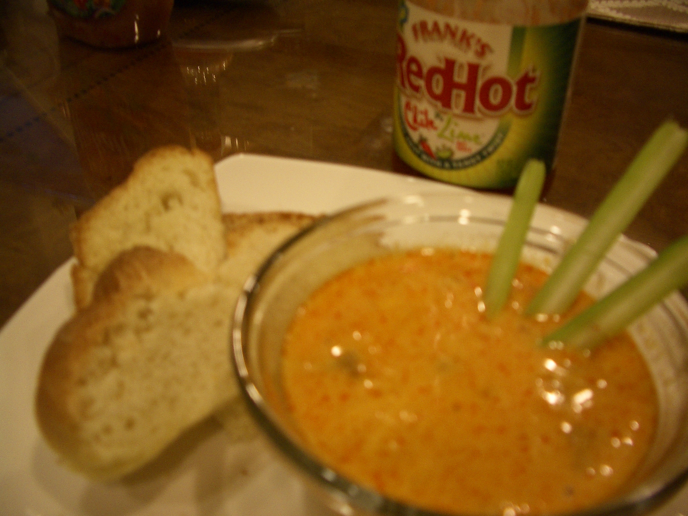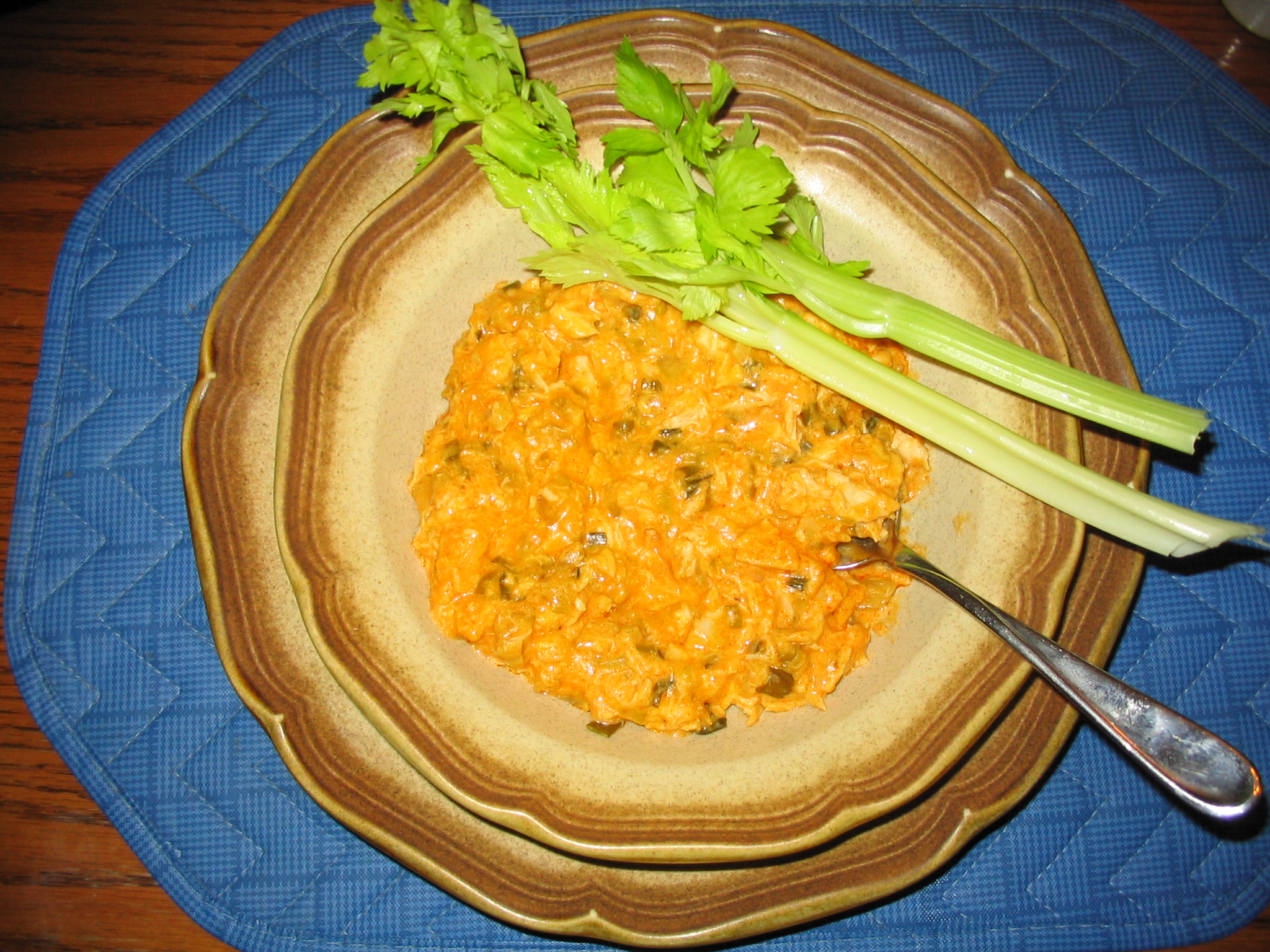 2 bunches green onions, chopped 3 stalks celery, chopped 1?4 cup butter 1?4 cup flour 3?4 cup milk 3?4 cup chicken broth 2 cups diced cooked chicken 1?4 - 1?2 cup chicken wing sauce 4 ounces Velveeta cheese 1?2 teaspoon cayenne 1?2 teaspoon celery salt 1?2 teaspoon garlic salt