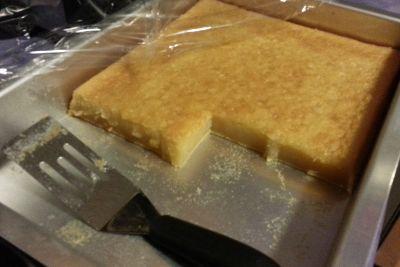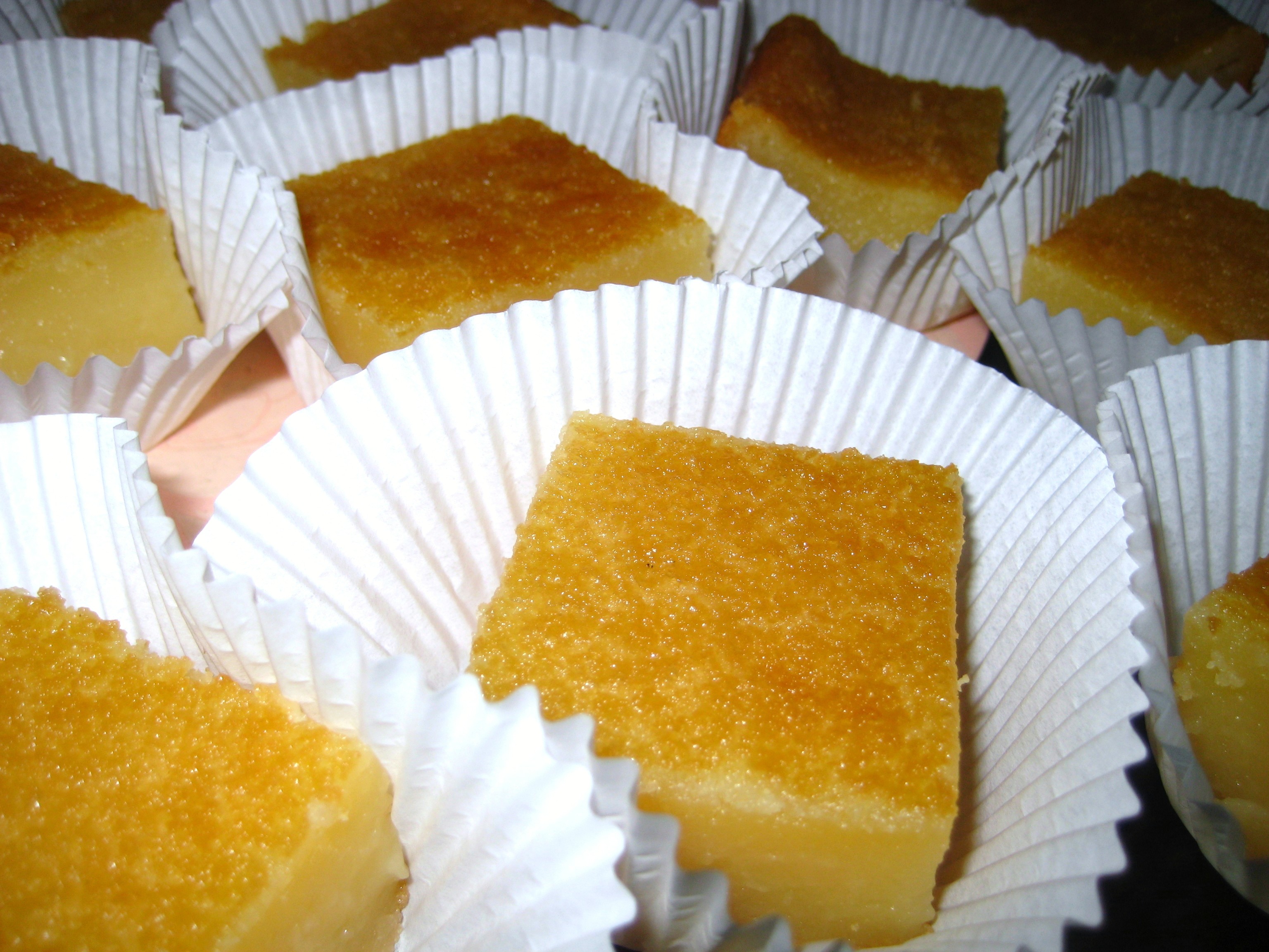 1 (16 ounce) box mochiko sweet rice flour 2 - 2 1?2 cups sugar 2 teaspoons baking powder 1?4 teaspoon ground cinnamon (optional) 1 (12 ounce) can evaporated milk 1 (14 ounce) can coconut milk 3 eggs 2 teaspoons vanilla 1?2 cup butter, melted