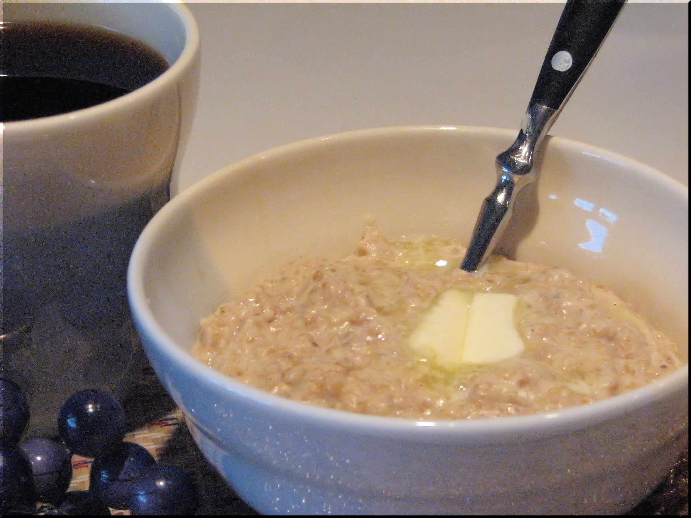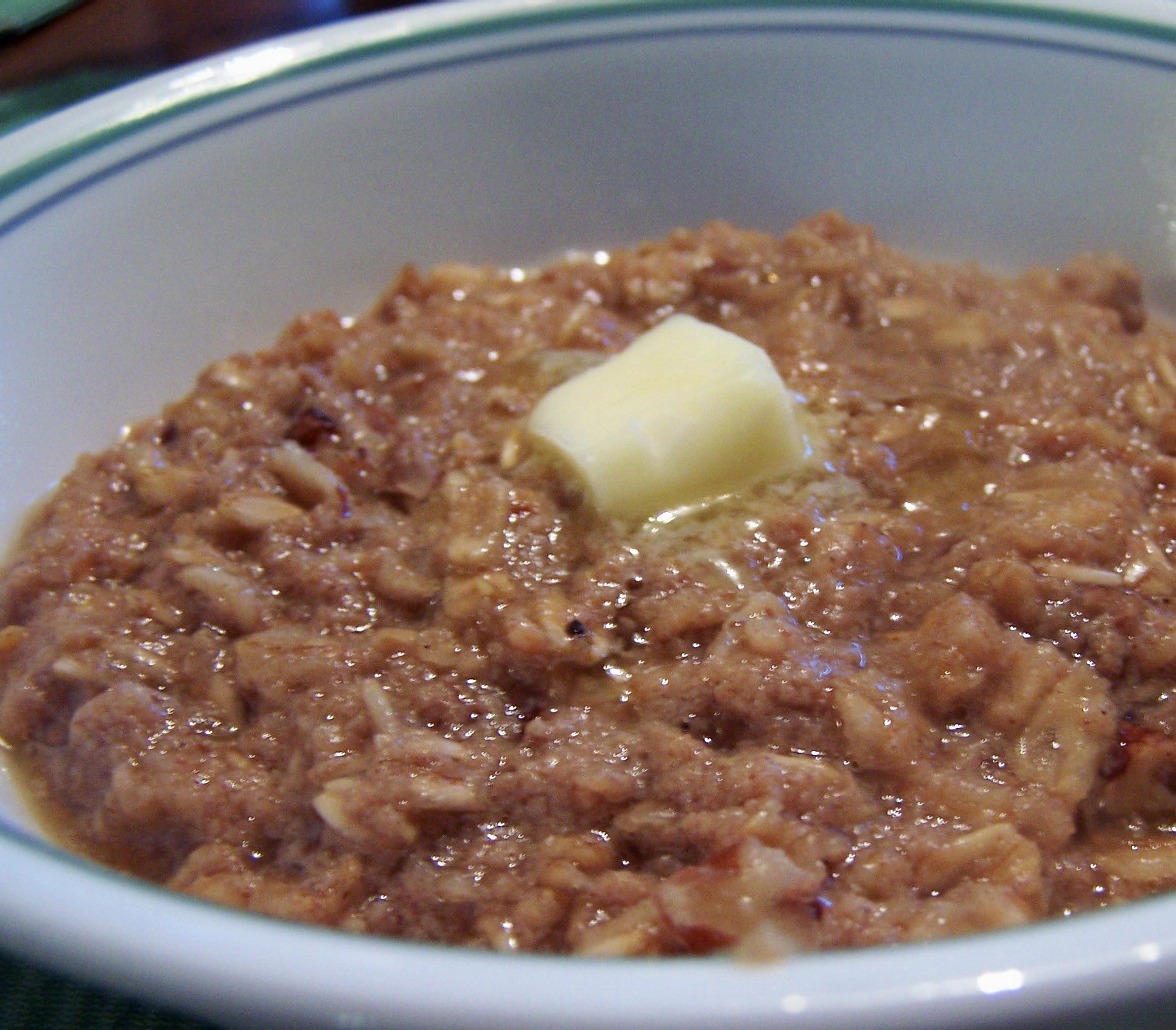 1 egg, beaten 1 3?4 cups milk 1?2 cup brown sugar (can use more) 1 pinch salt 1 teaspoon cinnamon (optional) 1 cup rolled oats 2 tablespoons butter