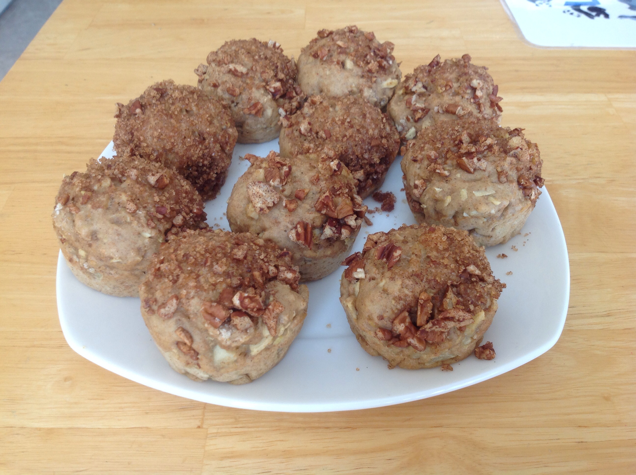 1 cup brown sugar, divided 1?2 cup buttermilk 1?3 cup canola oil 1 egg, beaten 1 teaspoon vanilla 1 1?2 cups all-purpose flour 1?2 teaspoon baking soda 1?4 teaspoon salt 1 cup peeled chopped apple (firm apples, such as Granny Smith work best) 1?3 cup chopped pecans 1 teaspoon cinnamon, divided