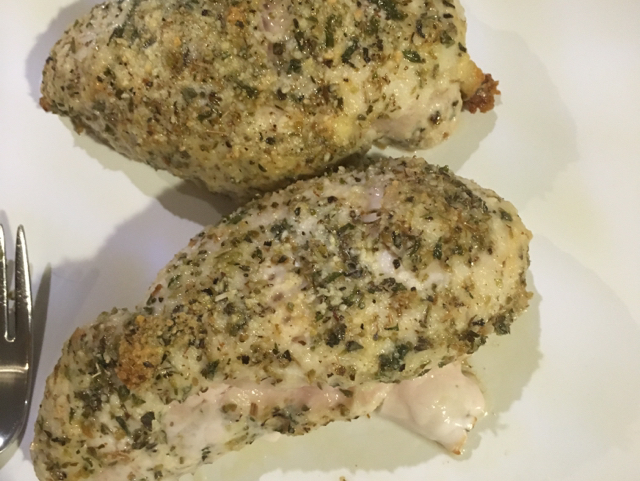 1?2 cup grated parmesan cheese 2 tablespoons dried oregano 1 tablespoon minced fresh parsley or 1 teaspoon dried parsley 1?2 teaspoon garlic powder 1?4 teaspoon pepper 3 tablespoons melted margarine 4 boneless skinless chicken breast halves