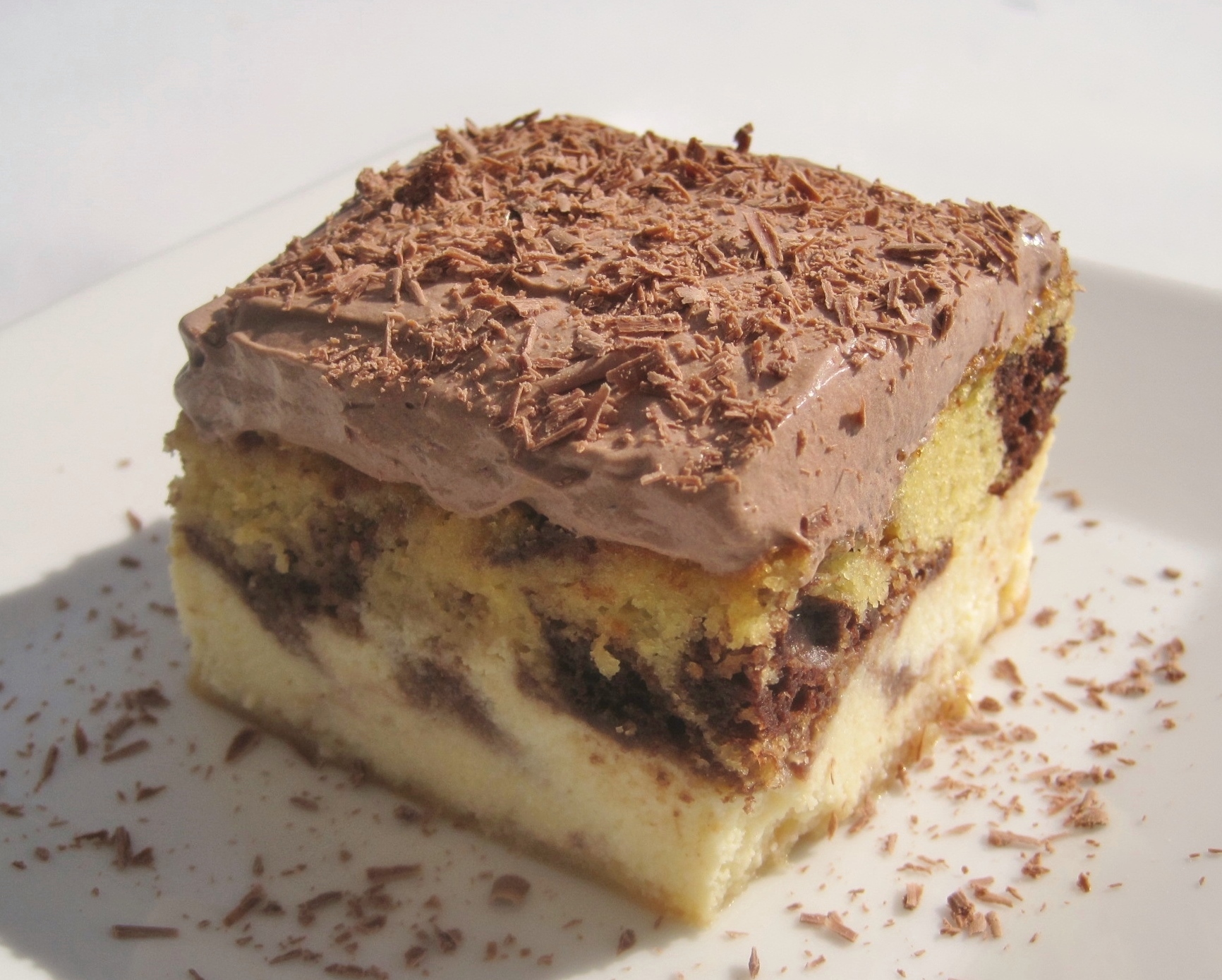 2 lbs ricotta cheese 1 cup sugar 4 eggs 1 teaspoon vanilla 1 (3 3/4 ounce) box instant chocolate pudding mix 1 cup milk 8 ounces non-dairy whipped topping, thawed (such as CoolWhip) 1 box fudge marble cake mix